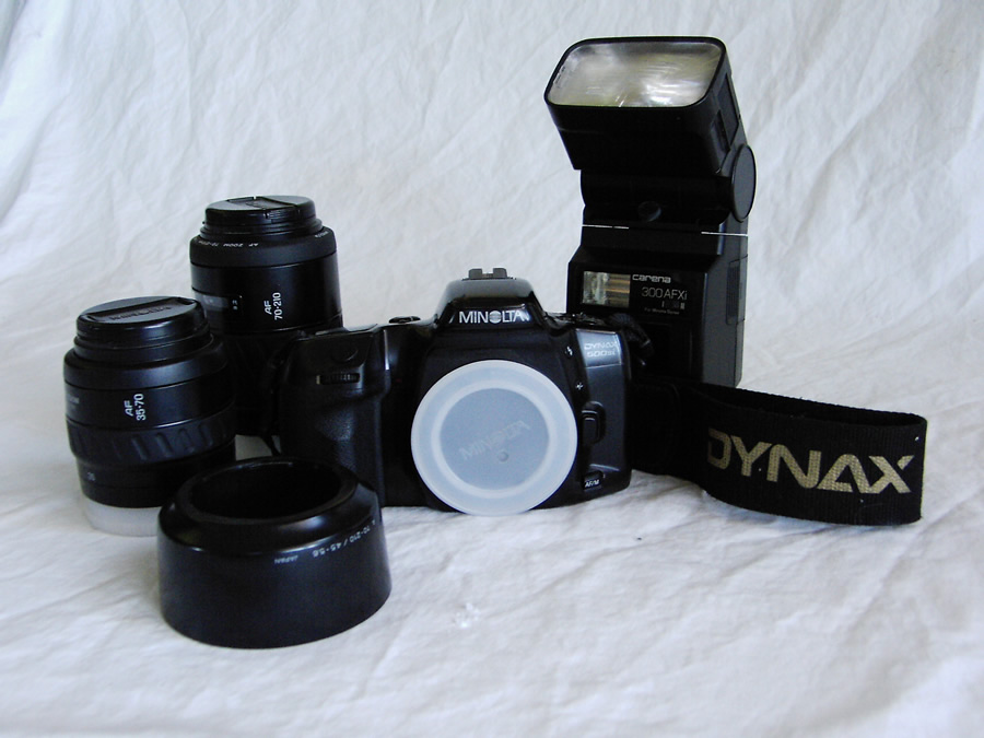 Minolta Dynax 500siMinolta Dynax 500si Spiegelreflexkamera mit 2 Objektiven, zusätzliches Blitzlicht und Tasche Blitz: Carena 300 AFXi für Minolta Dynax 2 Objektive: AF 35-70 und AF 70-210 von Minolta komplett für 150,00€ |